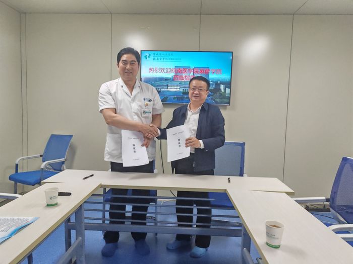 随后郭文俊一行实地考察了各家医院的实习教学条件、学生住宿环境,并与两家医院分别签订了“实习—就业一体化协议”。